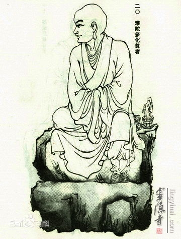 难陀,又作难铎迦,是感到欢喜的意思。难陀的嗓音非常美妙,讲起佛法来音律优美,节奏铿锵有力,能够使人们在不知不觉中受到教化。难陀又被称作为牧牛难陀。据说,他曾经向佛陀讨教过关于养牛的事情,他提了十一个古怪的问题,想以此难为一下佛陀,谁知佛陀一一为他解释明白,甚至比农夫的回答还要详细。难陀因此知道佛陀具有世间的一切智慧,天上地下的所有事物都看在眼里,记在心中,遂依佛出家,修得阿罗汉果。