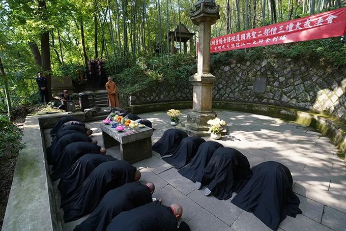 ▲灵隐寺三坛大戒戒子礼弘一大师舍利塔