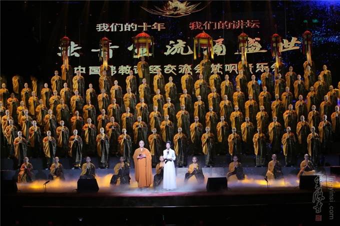 为祝贺中国佛教讲经交流十周年总结表彰会在杭州召开,9月17日晚,《法音宣流诵盛世》梵呗音乐会在浙江省人民大会堂举行。