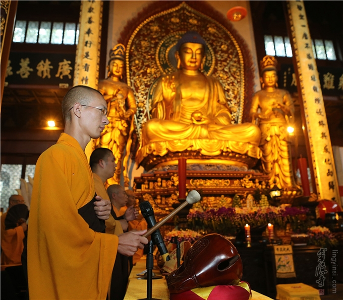 此次"地藏法会",是灵隐寺每年共修法会之一。大众法师和善信居士,用功办道,勇猛精进,四众和合共诵《地藏菩萨本愿经》,广作回向,使有缘此次殊胜法会的游人香客随喜功德,同沾法益。