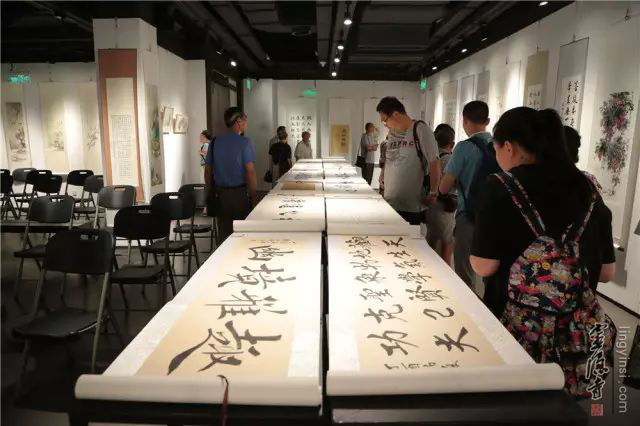 浙江省书法家协会会员、杭州图书馆佛学分管陈硕先生细心点评了部分参展作品,让参加开幕式的嘉宾们看到了"热闹",也听到了"门道",也对参展书画作品的艺术理念进行了一次"再传播"。