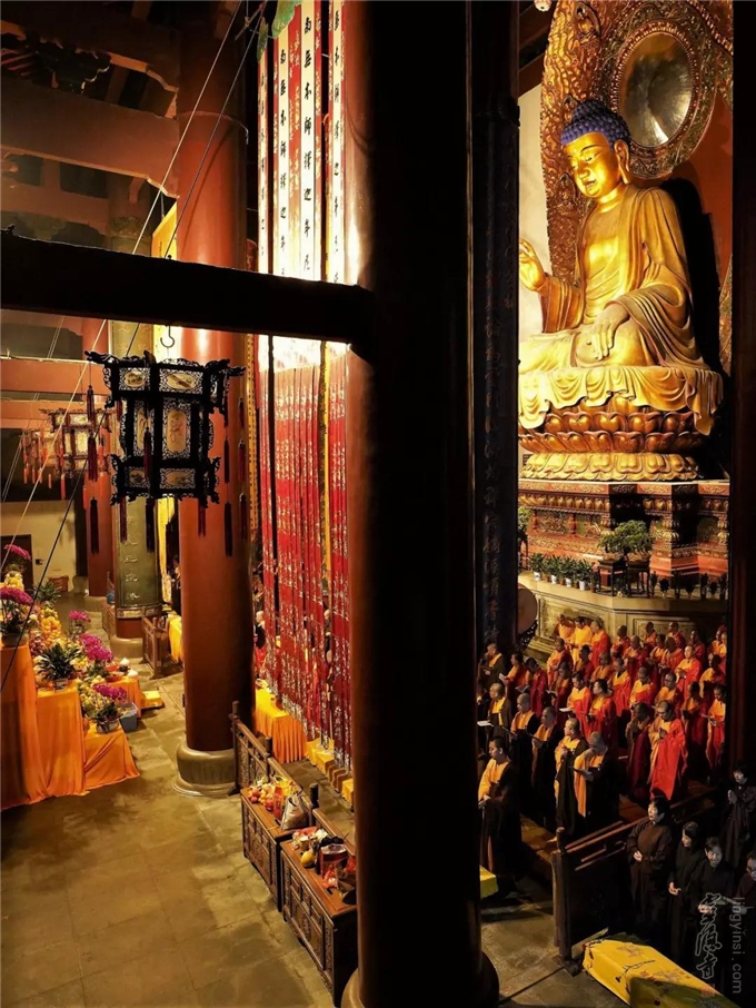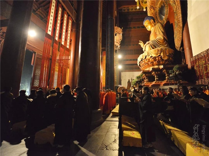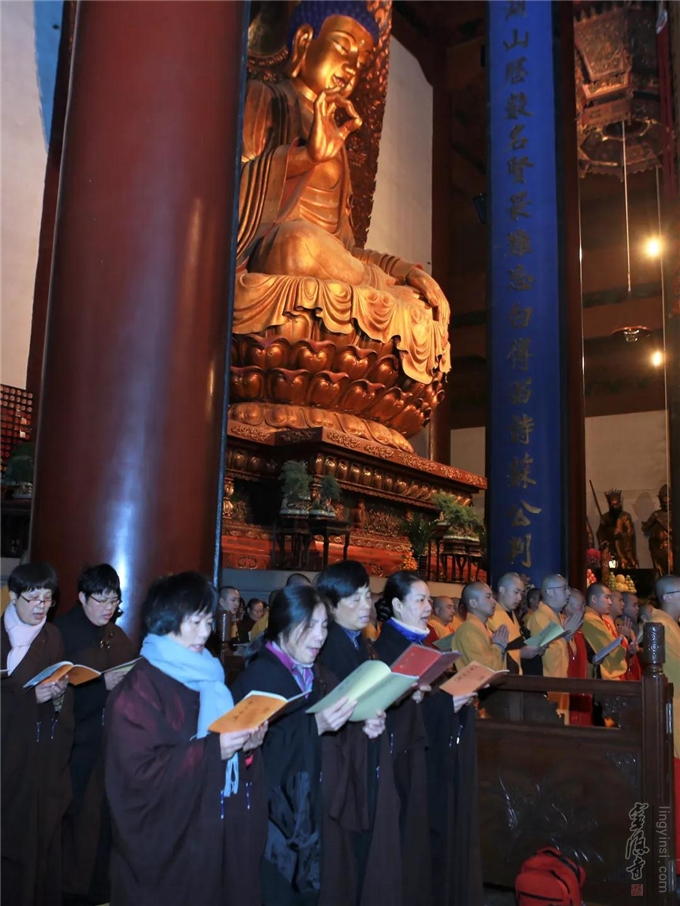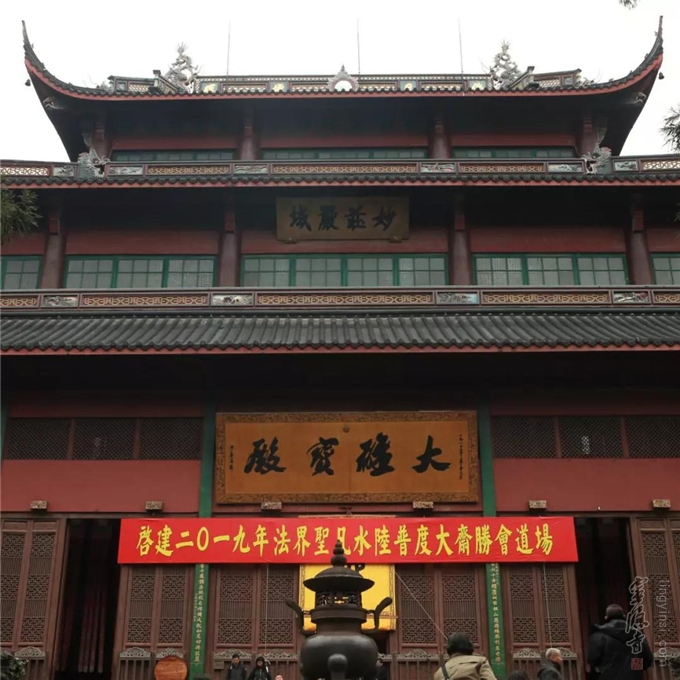 2019年11月25日(农历十月廿九),杭州灵隐寺"己亥法界圣凡水陆普度大斋胜会"进入第六日,水陆大坛斋天法会在大雄宝殿内隆重举行,来自各地的三百余善信居士参加斋天活动