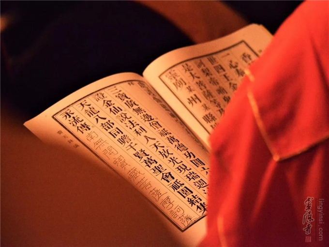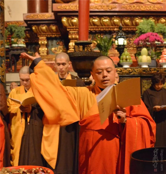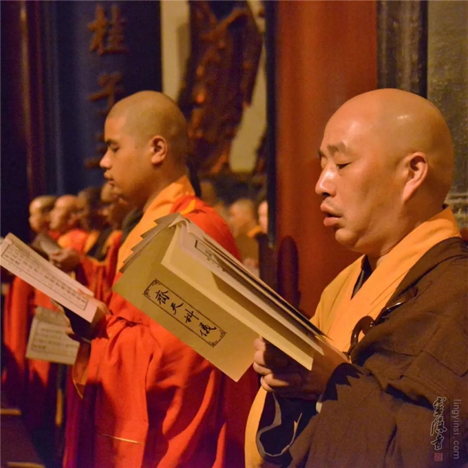 灵隐寺水陆斋天法会大致可分:甘露净坛、燃香炳烛、香花请圣、宣读疏文、诵经施食等五个部分进行。