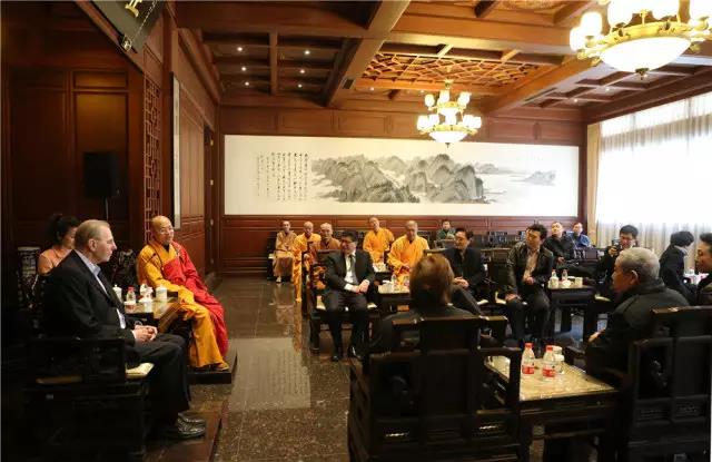 光泉大和尚はまず各殿堂を説明しながら巡り、その後開かれた歓迎座談会で、ロゲ夫妻に霊隠寺の全体状況を紹介した。そして、ここ数年来、霊隠寺が努力して伝統文化を継承し、仏教文化を高揚しながら、海外にも進展し、異文化間の友好交流に力を尽くしている旨を伝えた。