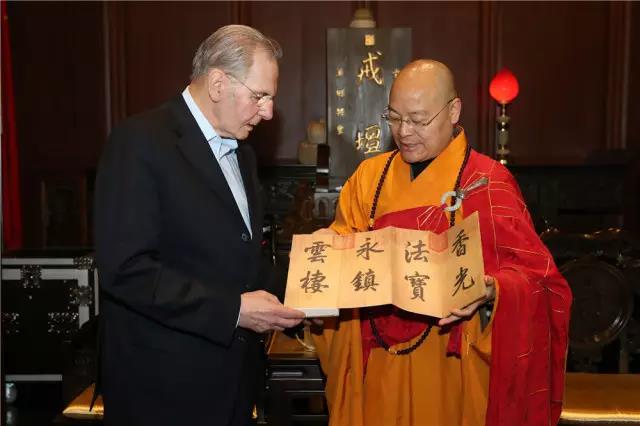 ロゲ氏は、「スポーツは宗教ではないが、平等公正や多次元の融合、平和友好などオリンピックの精神は仏教の精神にあい通じている」と述べた。最後にロゲ氏と光泉大和尚は互いに記念品を交換し合った。
