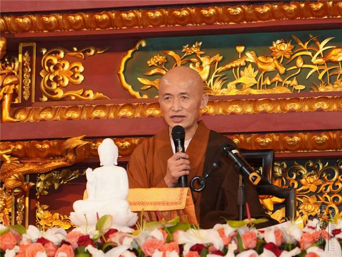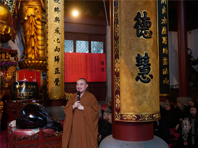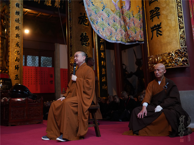 上午八时,引礼四师父普虚律师在药师殿为戒子们开示。