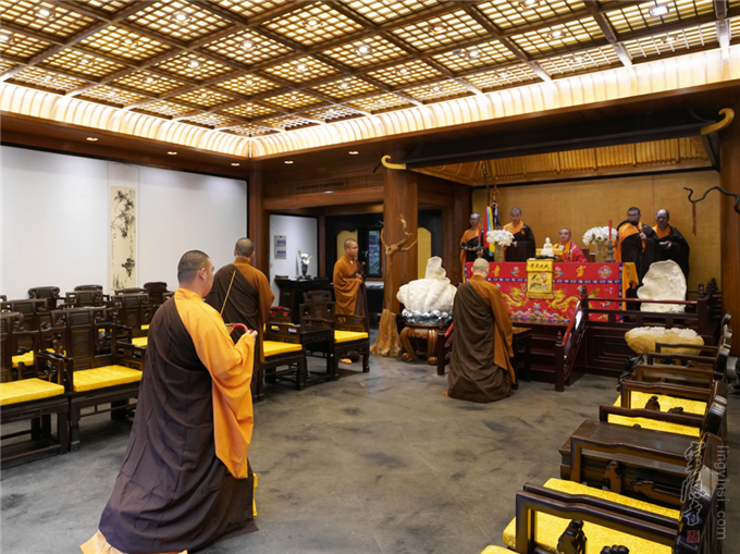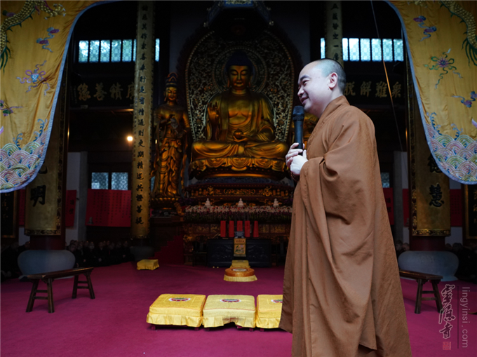 2018年5月21日(农历四月初七),"戊戌春灵隐寺三坛大戒法会"进入第二十七天,传戒法会接近尾声。当日,为让戒子们在日后的朝山拜佛中懂规矩、知礼仪,开堂大师父芳振律师及诸位引礼师在药师殿教授戒子们如何朝山挂单。
