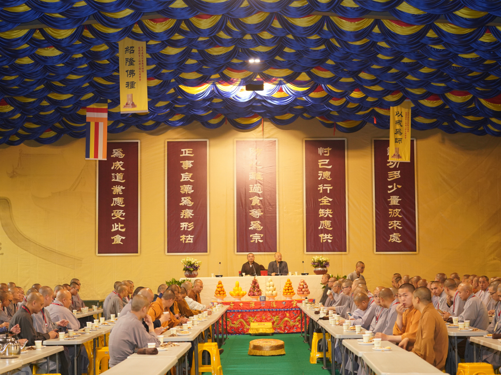 为了让戒子们能更加直观地了解如何挂单,芳振律师让戒子与引礼师当场示范互动。戒子与引礼师机智幽默的问答,惹得大众不时爆发出阵阵笑声。随后,芳振律师又为戒子们讲解了回去后"拜剃度师父"的规矩。众新戒欢喜信受,依教奉行。