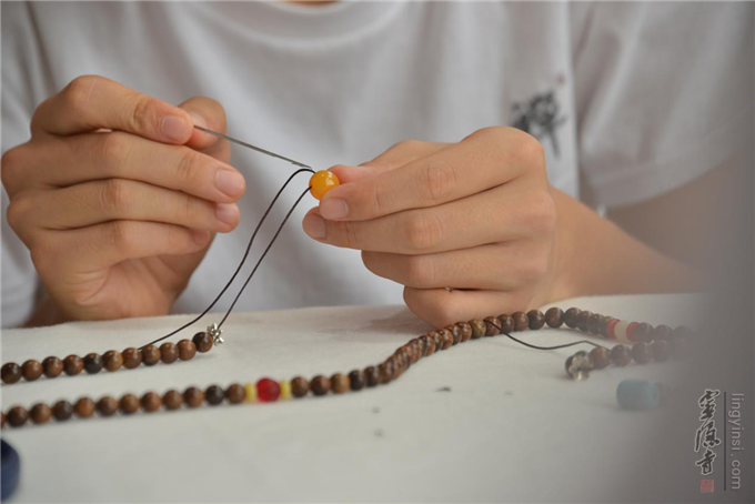 在家菩萨戴装饰品的时候,如戴耳环、项链、戒指等等装饰品的时候,要能提起正念,愿一切众生都能警觉,这些装饰品是虚假的庄严。愿一切众生,以福慧为庄严,以悲智为璎珞,以直心为道场,以自性清净为真实处;