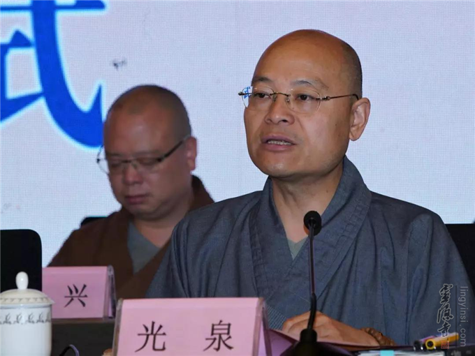光泉法师代表承办单位和协办单位,向前来出席开幕式的各位领导、诸山长老、大德法师、护法居士以及各位嘉宾表示热烈的欢迎和诚挚的感谢。