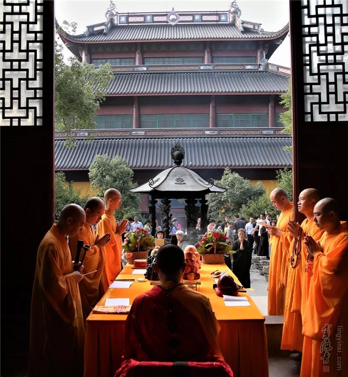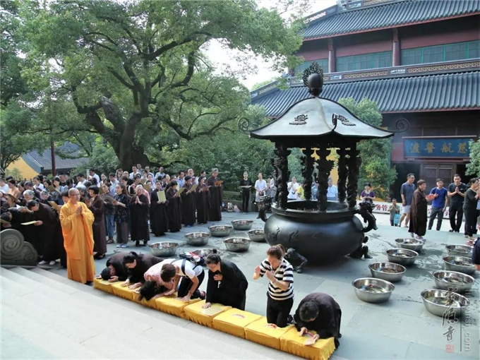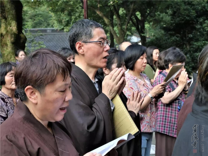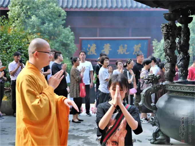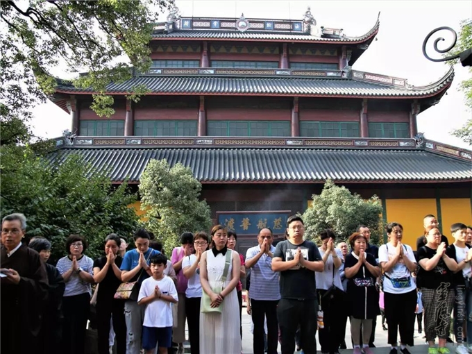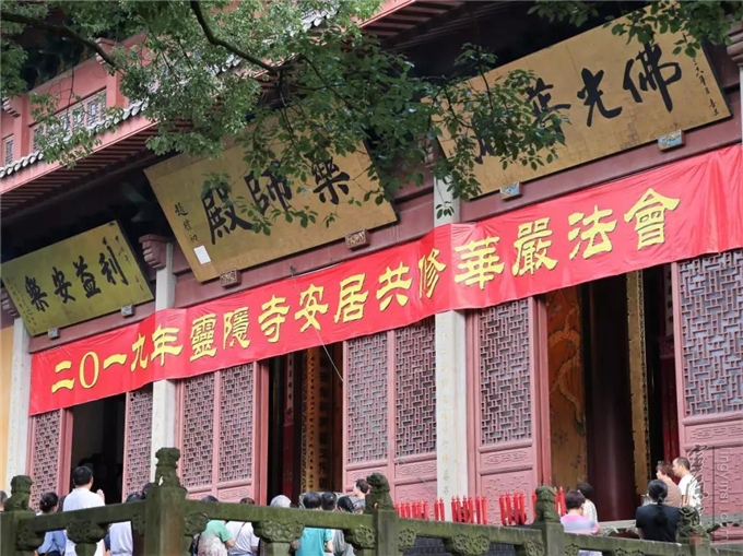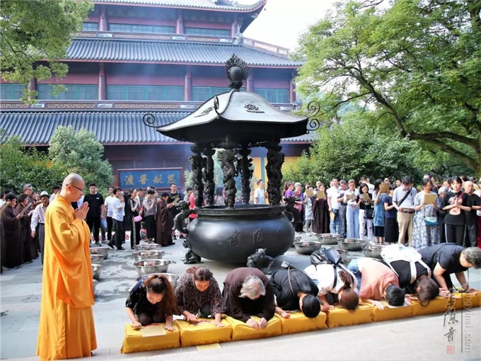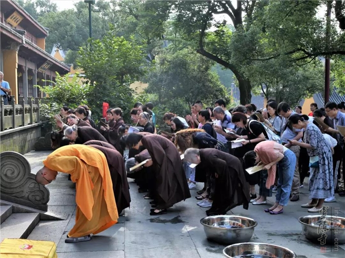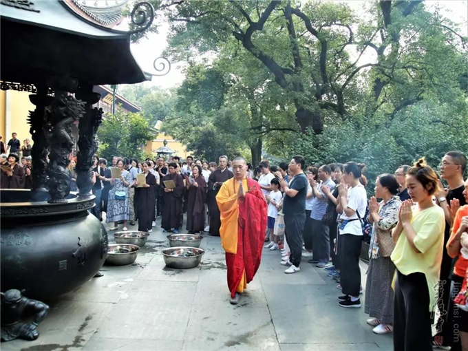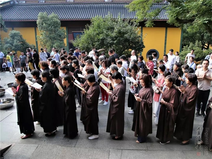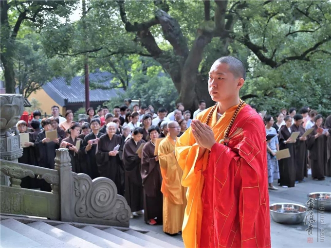 2019年7月17日(己亥农历六月十五)早上七时,杭州灵隐寺在药师殿前举行放生法会,大众共祈世界和平无兵戈,国泰民强人安康。