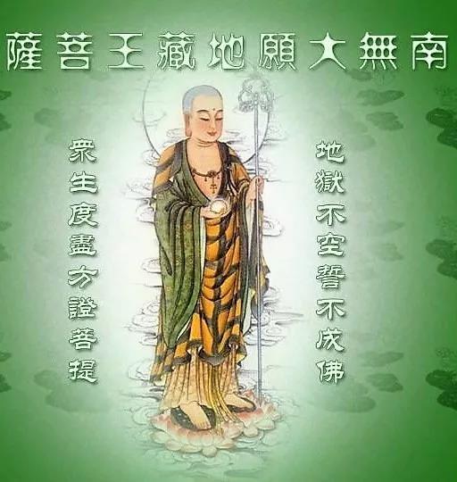 《地藏菩萨本愿经》说,地藏菩萨在忉利天宫受释迦佛咐嘱,在释迦佛入灭后到弥勒佛下生人间之前,六道众生都由他来教化。地藏菩萨立誓,要度尽六道一切众生自己才成就佛果。