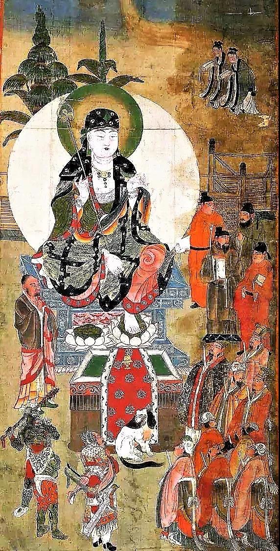金乔觉坐化,白犬亦随之傍息。故建寺连白犬同请供奉。金乔觉被佛门认定为地藏菩萨之应化,称金地藏。这只神犬也因是金乔觉的护身之物,被佛教尊称为神犬。神犬谛听晓佛理,通人性,避邪恶,视为吉祥的象征。