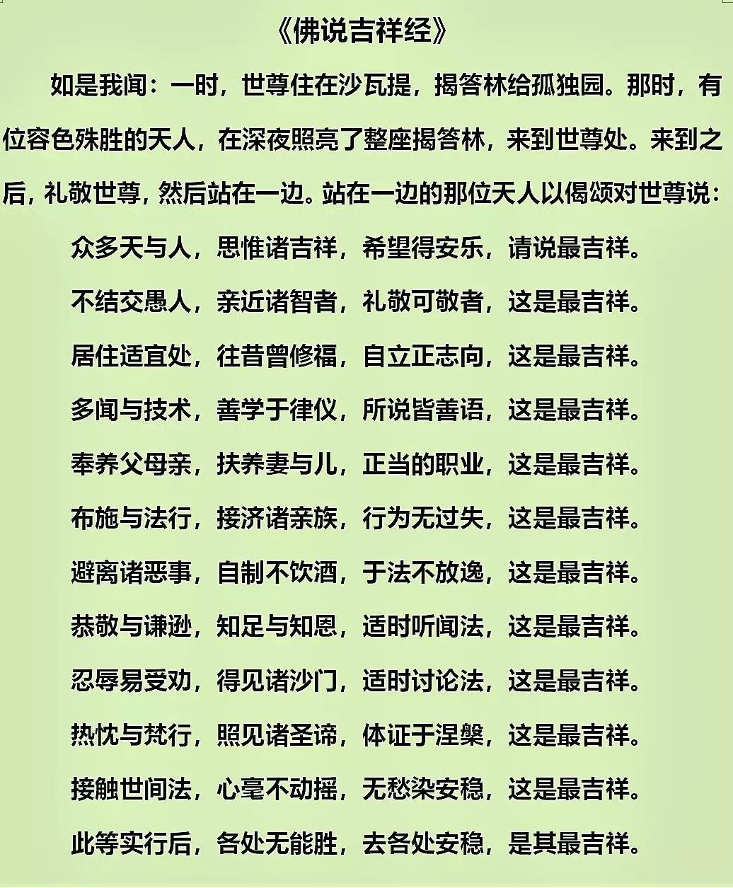 《吉祥经》有很多种版本,我所选用的是《小诵经注》的版本,现将全文录出: