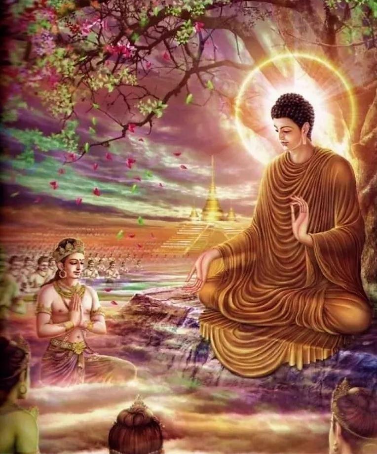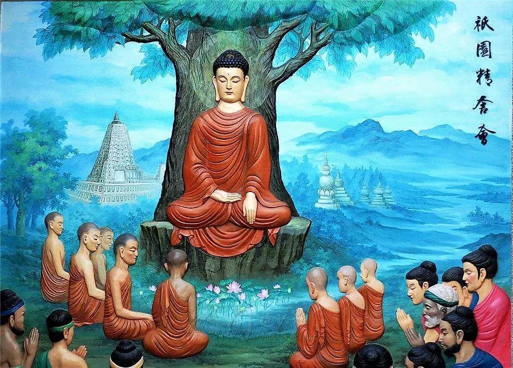 佛陀那夜住在祇树给孤独园中,天子来他的身边,向他问出那个困扰了人间和天上十二年之久的问题——