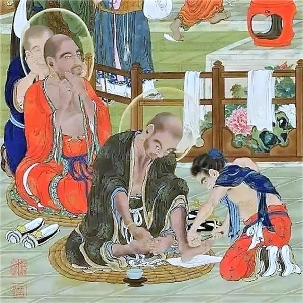 水潦和尚问道:“如何是西来的意?”马祖道:“礼拜著!”水潦和尚刚跪下礼拜。马祖突然当胸一脚,将他踢倒在地。就在这突如其来的一踹中,水潦和尚豁然大悟。他从地上爬起来,拊掌呵呵大笑道: