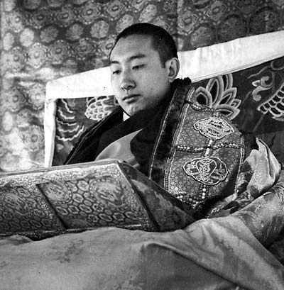达赖喇嘛十四世 达赖为藏传佛教格鲁派(黄教)活佛之一,"喇嘛"意为"上师",对藏僧的尊称。1955年1月,十四世达赖喇嘛来杭,参观礼拜灵隐寺等名刹。
