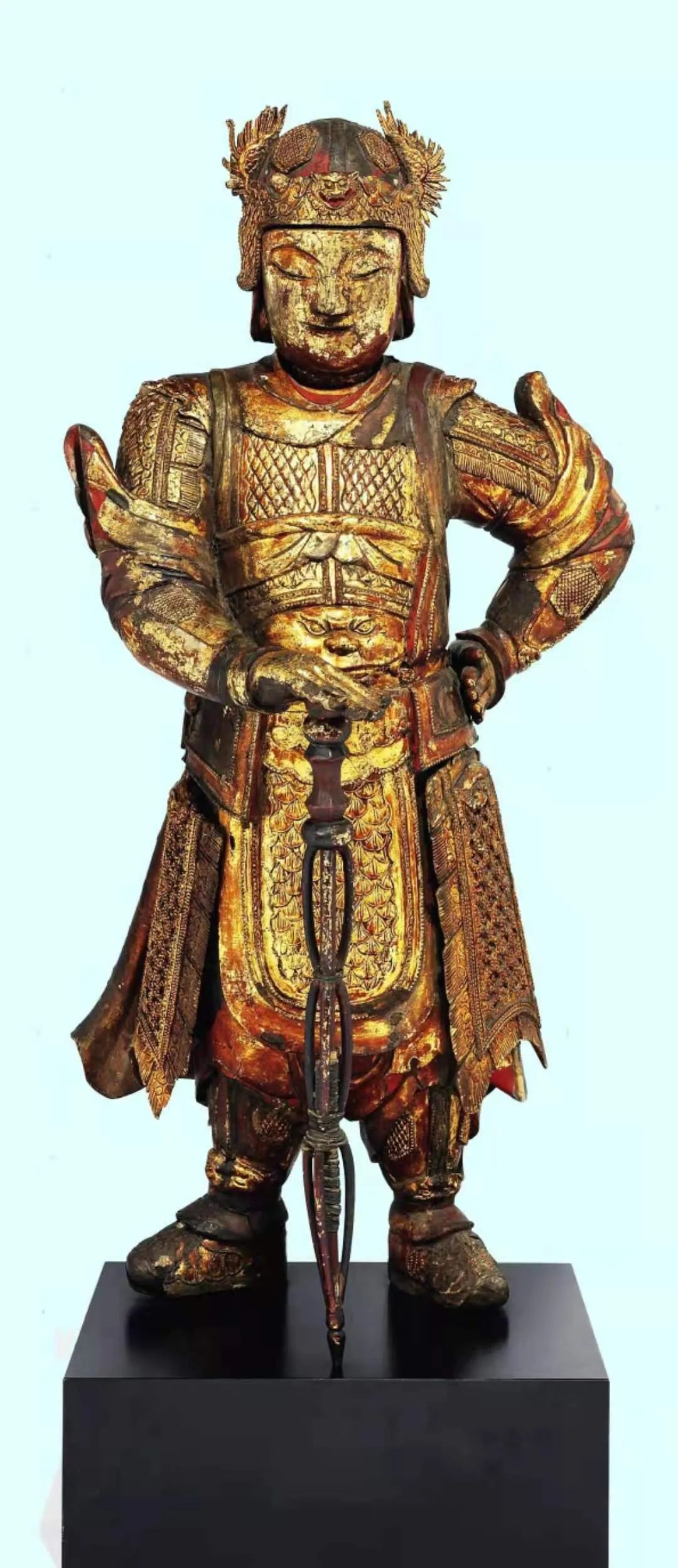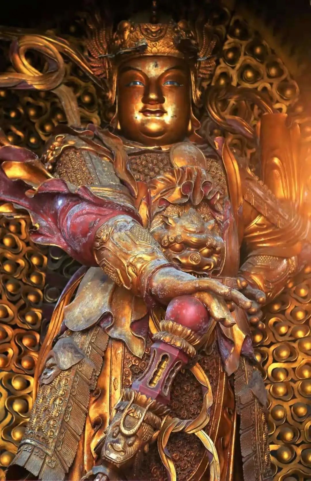 《道宣律师天人感通传》中记载,唐代道宣律师因持戒精严,道行高深,感得天人护法。他曾与天人会谈,说到南方天王部下有一位韦将军,常周行东、南、西三洲(北洲少有佛法,故言“三洲”),护诸梵行沙门。因此宋代以后,中土寺院均塑韦陀尊天圣像。而供奉韦陀菩萨之处,也往往以“威震三洲”或“三洲感应”来表示菩萨的殊胜功德。