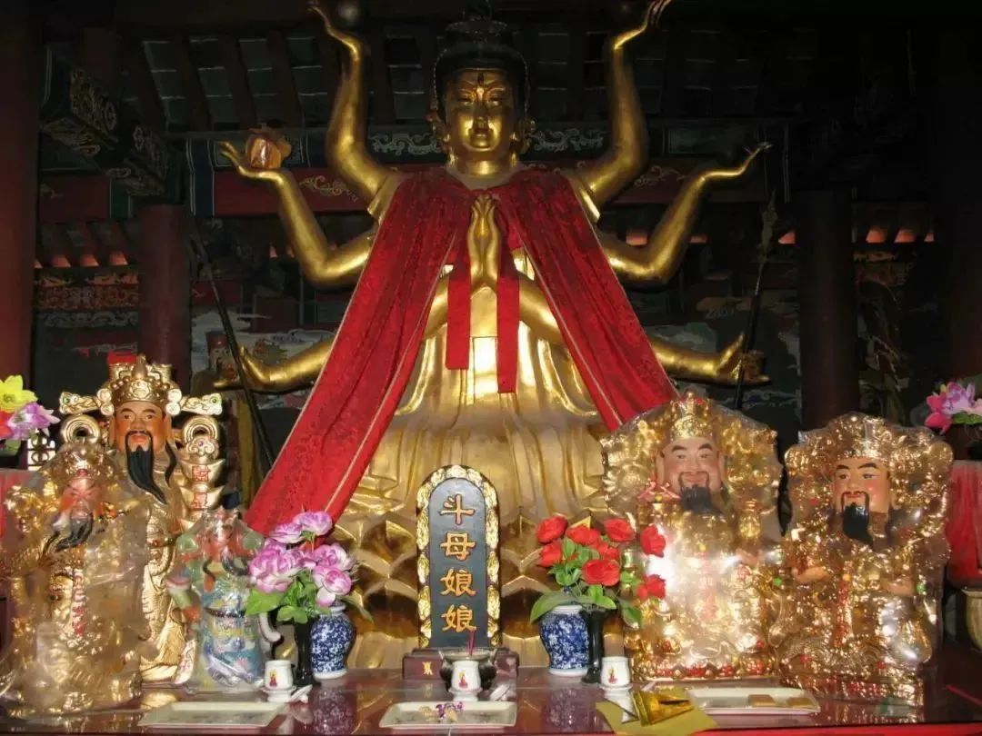 佛教中的摩利支天菩萨,在道教里被尊称为姥元君(斗母娘娘)先天大神。他是紫微大帝、勾陈大帝(天皇大帝),以及北斗众星之母,地位极其崇高。