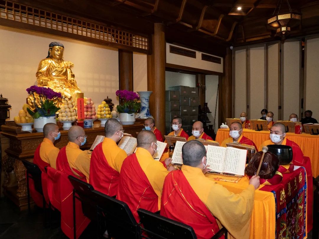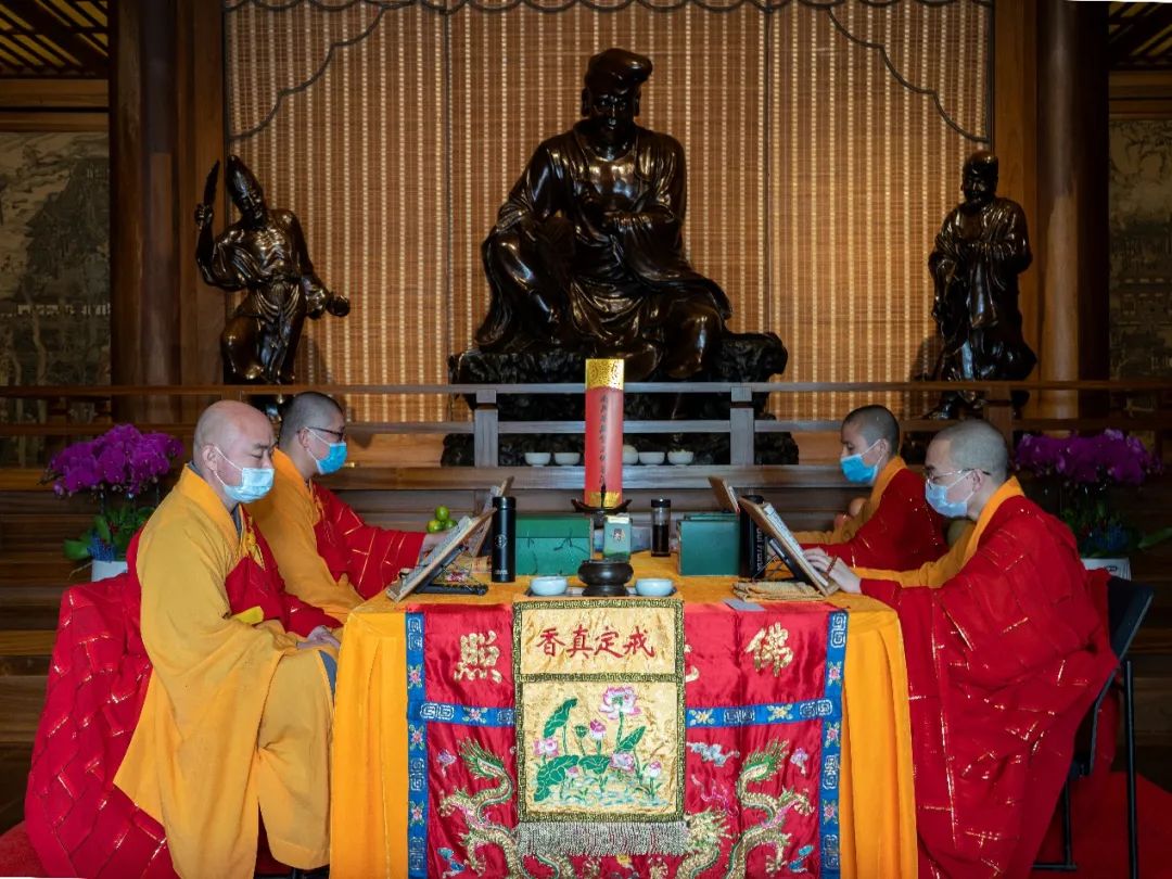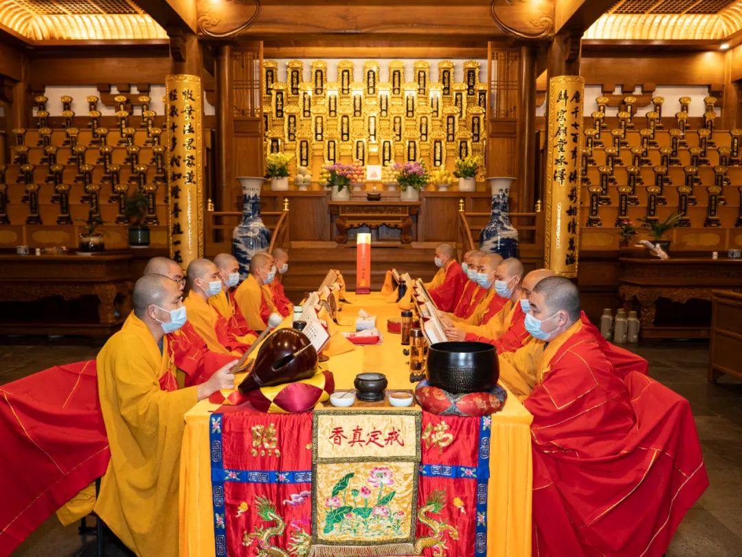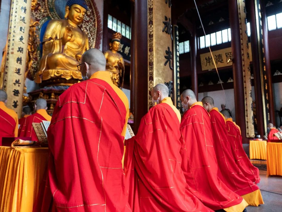 18日清晨7时30分,瑞霭云集,甘霖普降,灵隐寺内鱼鼓齐震,钟磬同鸣,二〇二一年法界圣凡水陆普度大斋胜会正式启建。外坛之大坛、华严坛、诸经坛、楞严坛、法华坛、净土坛六个坛场依照水陆法会仪轨,同时开始如法拜忏诵经。