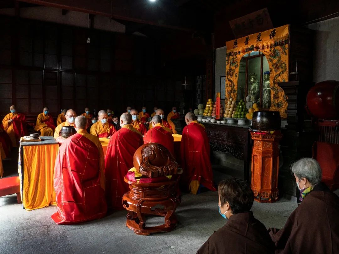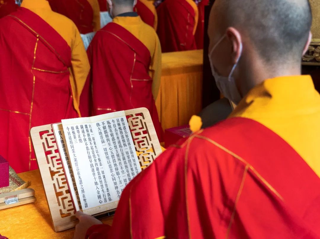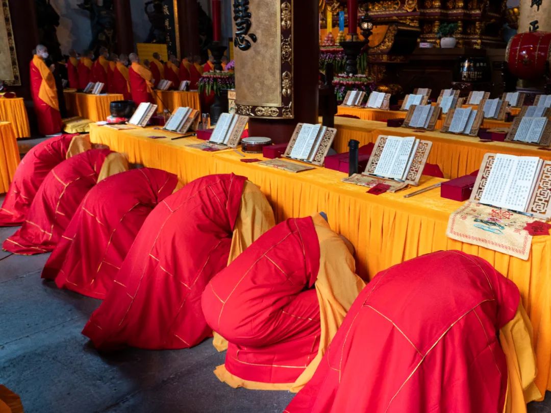灵隐寺辛丑水陆法会在药师殿设大坛,法师带领众礼拜《梁皇宝忏》。通过皈依、断疑、忏悔、解冤、礼佛、报恩、回向等忏仪形式,藉由共修以提起大家的虔诚忏悔的正念,时时返观,让身心在忏悔中破除障碍,获得清凉。