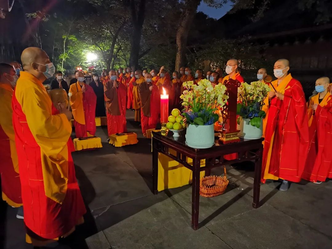 18日傍晚18时30分,水陆法会首场瑜伽焰口在直指堂启建,金刚上师登坛主法,施放焰口,演说佛法,为授皈戒,解除饿鬼饥虚,令其具足正见,以期早日脱离苦趣,成就菩提。历时四个多小时,水陆法会首场瑜伽焰口圆满。