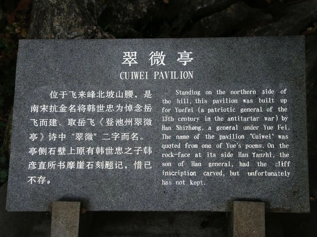 多事之秋的南宋,涌现出许多著名的爱国者,他们肩负起保家卫国、捍卫华夏文明的历史使命。今天说一说灵隐飞来峰的翠微亭。