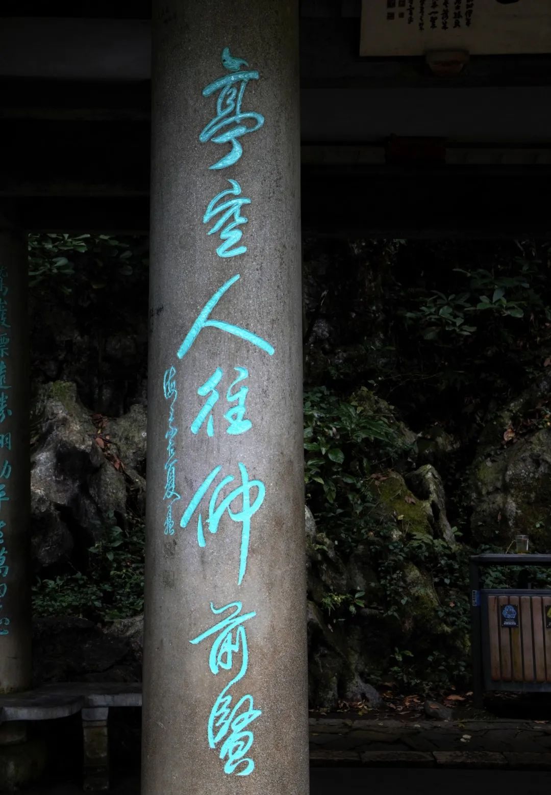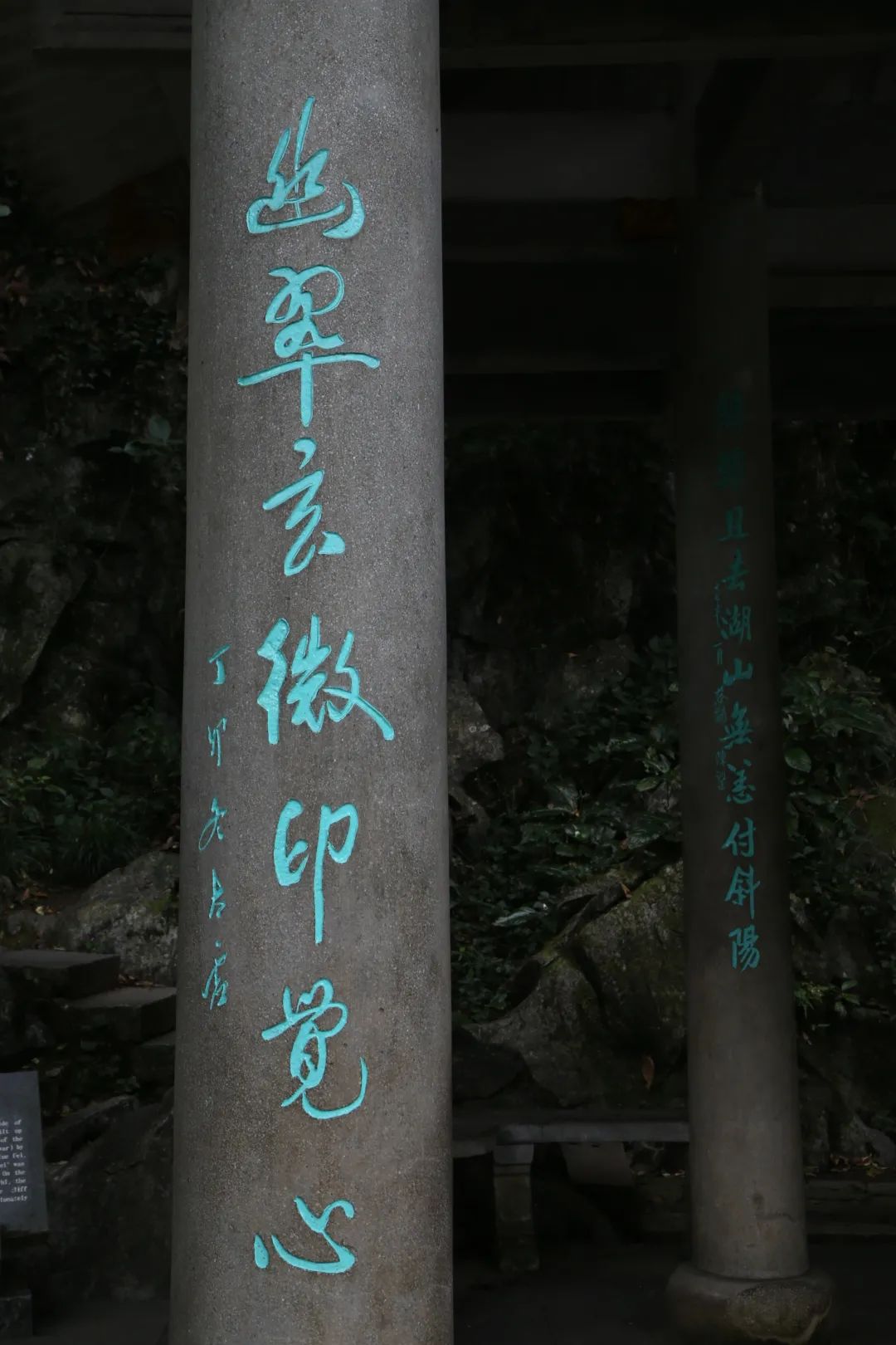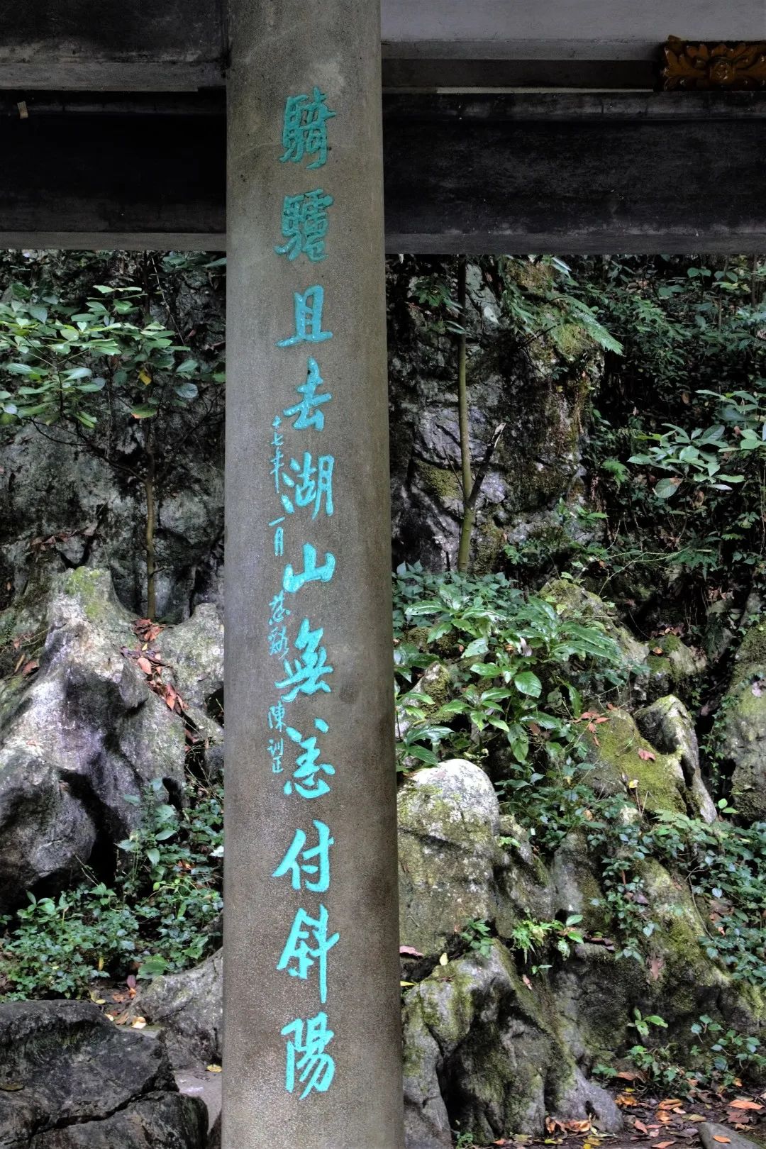这个题记,至今仍可在亭旁的石壁上隐约可见。题记表明韩世忠建亭的目的是为了悼念岳飞。