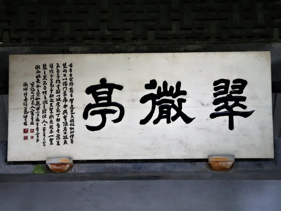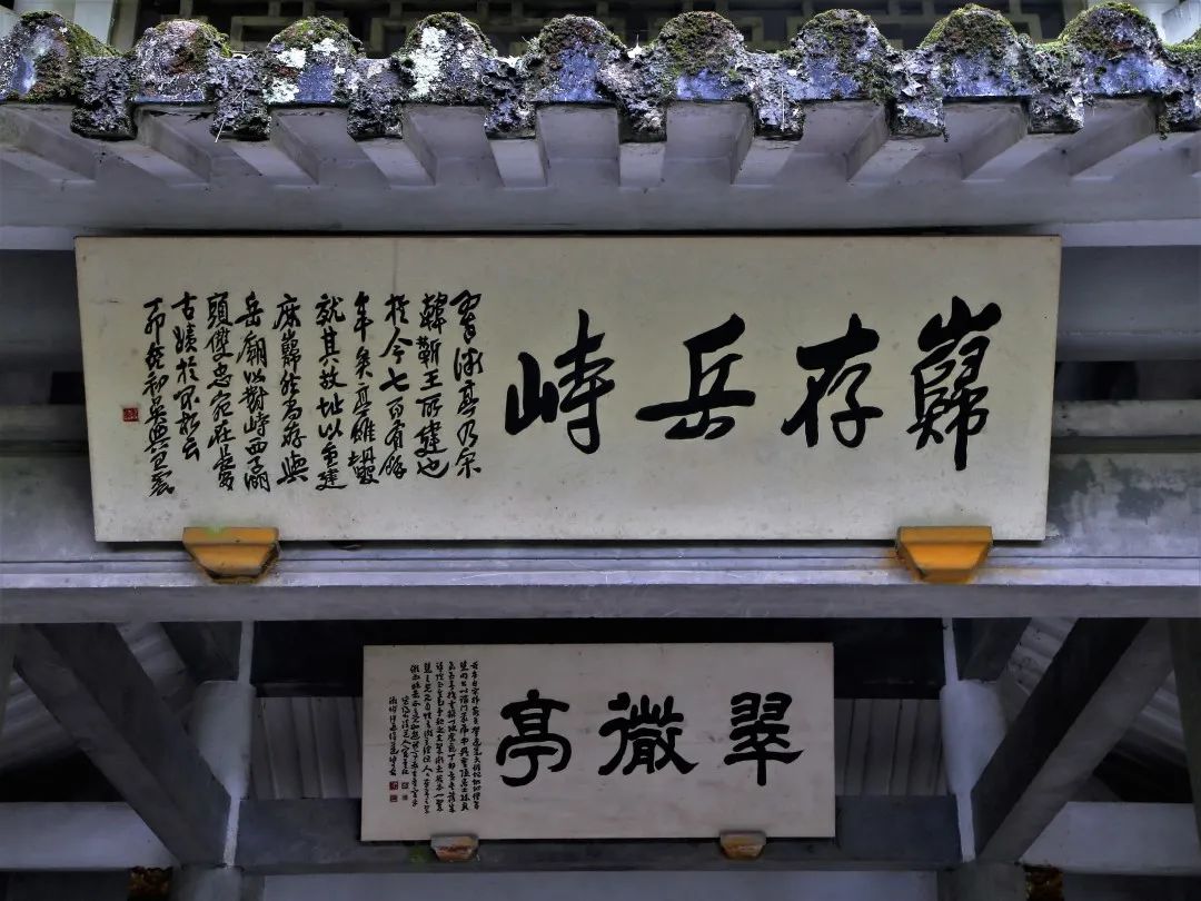 翠微亭有二块横额:一题“翠微亭”。另一题“岿存岳峙”。