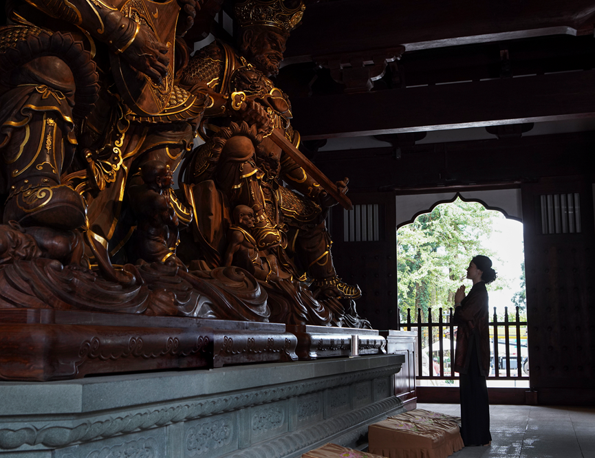 胜鬘夫人说完此偈,佛陀知其度化因缘成熟,便以神通力现身空中,普放光明。胜鬘夫人及其眷属见到尊贵的佛陀,以至诚恭敬心顶礼。