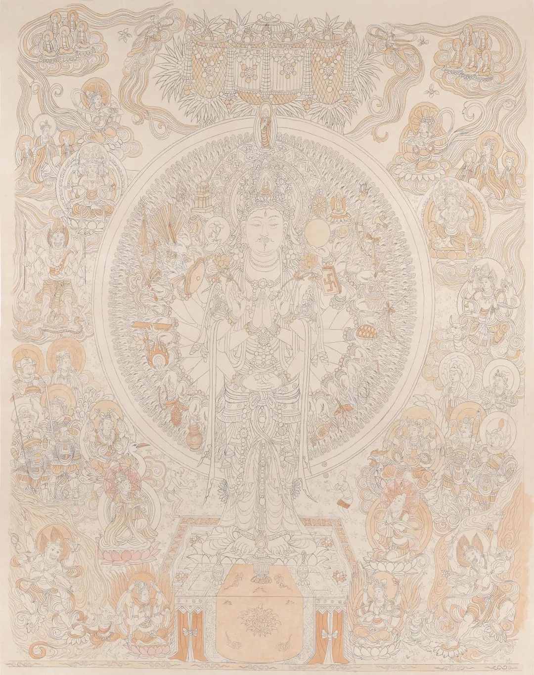 《楞严经》说:“一首三首,五首七首,九首十一首,如是乃至一百八首,千首万首,八万四千,烁迦罗首。二臂,四臂,六臂,八臂,十臂,十二臂,十四,十六,十八,二十至二十四,如是乃至一百八臂,千臂、万臂、八万四千母陀罗臂。二目、三目,四目、九目,如是乃至一百八目,千目万目,八万四千清净宝目。或慈或威,或定或慧,救护众生,得大自在。”