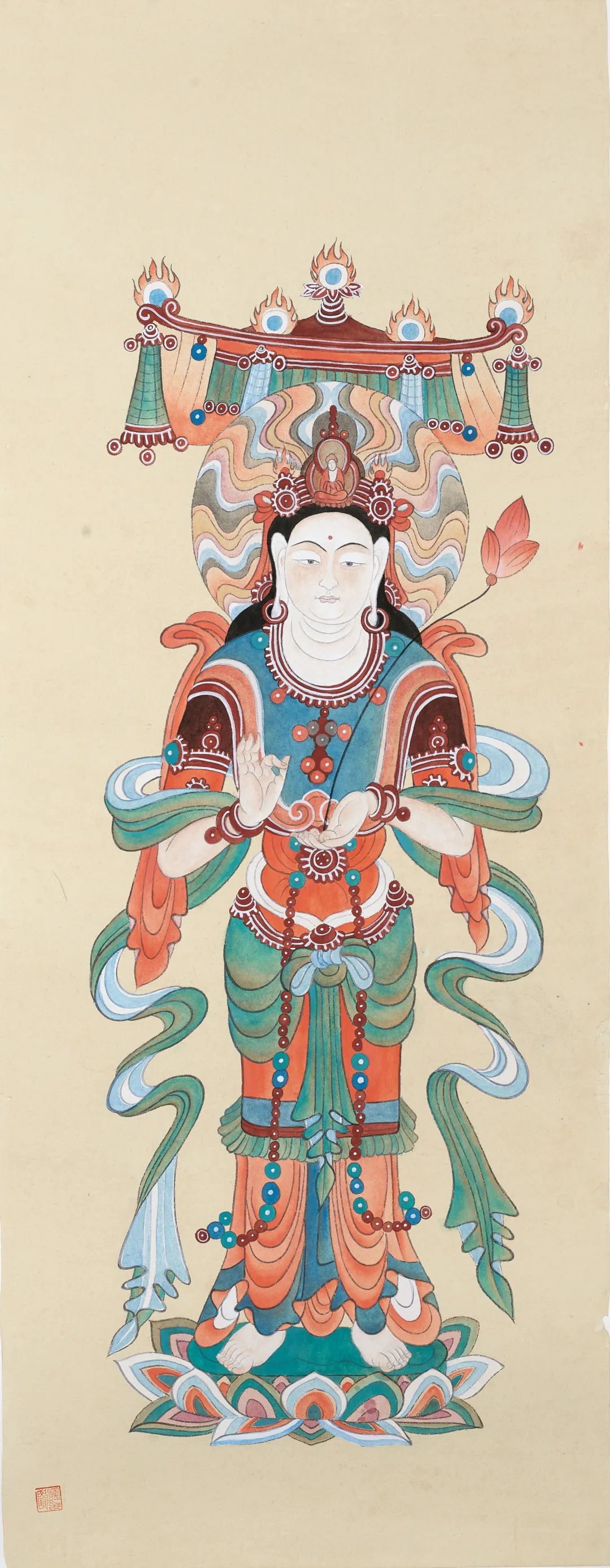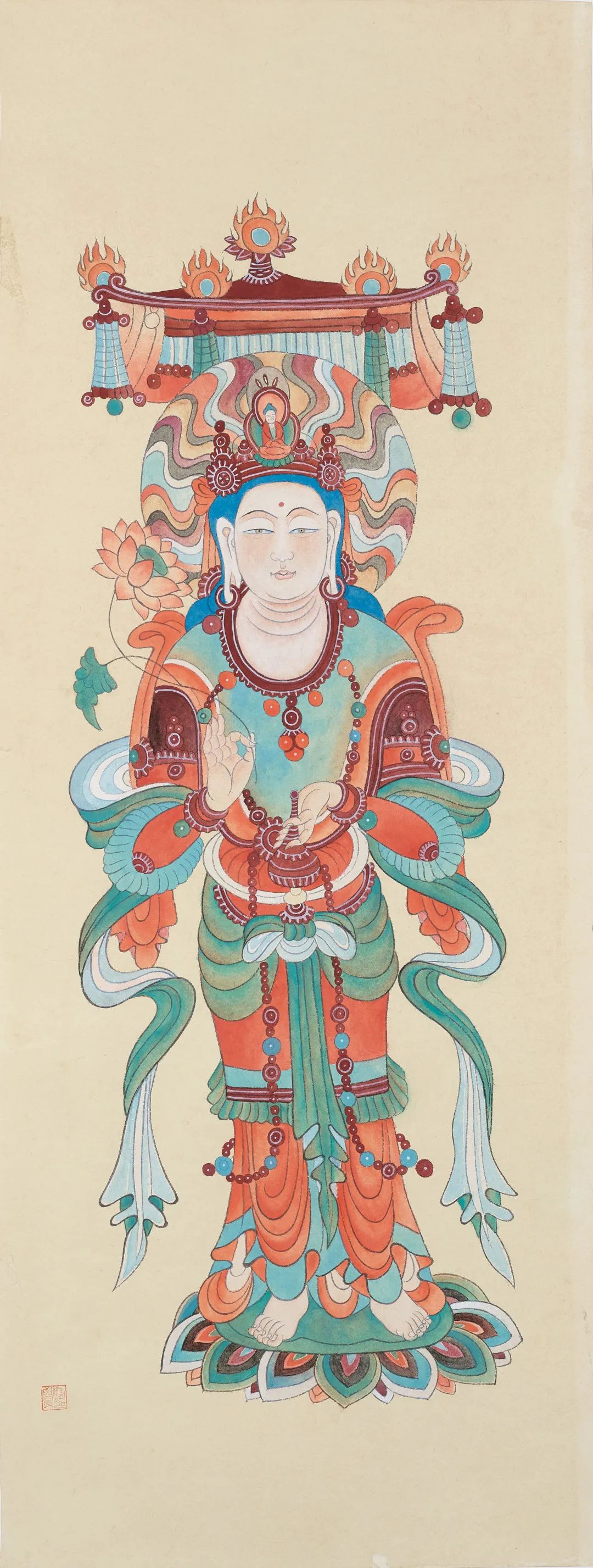 今观世音菩萨,修习耳门圆通,尘尽智圆,故得佛心,证于究竟。然而本有家珍,悉皆具足,故能以种种珍宝,上供诸佛,下惠六道众生。凡有所求,无论世间财物,抑或出世财富,无不应之。观世音菩萨,证得藏心,法性平等,能生、佛皆供养,世间财物,出世法财皆布施,其无作妙力,实在不可思议。