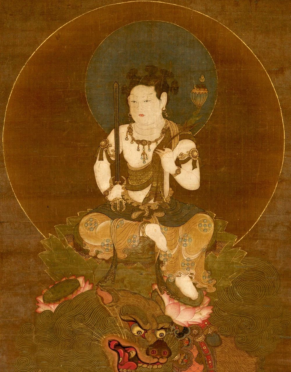 文殊师利菩萨为佛教四大菩萨之一,是佛陀的大弟子,是智慧的象征,与“大悲”观世音菩萨、“大愿”地藏菩萨、“大行”普贤菩萨,并称四大菩萨。