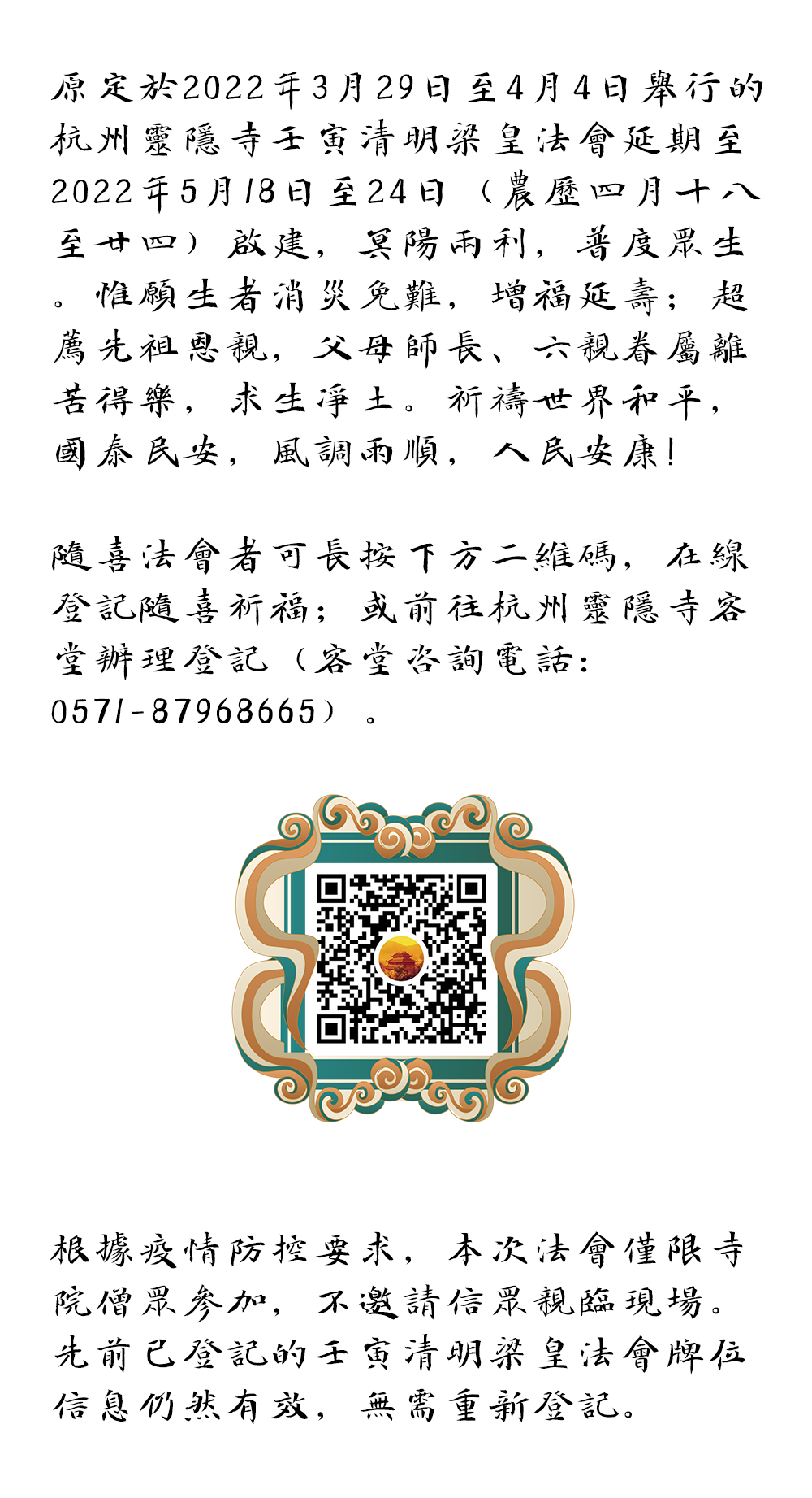 汉传佛教的古德编著有《梁皇宝忏》《大悲忏》《三昧水忏》等各种忏悔法,其特征是事忏与理忏合一,理事不二。例如灵隐寺正在进行的梁皇法会,所依据的《梁皇宝忏》有具体的仪轨,通过礼拜、赞叹、诵经等种种方法,引导修行者依文起观,于拜忏时身心合一,事理圆融,必能净化内心,不留罪根,忏罪清净!