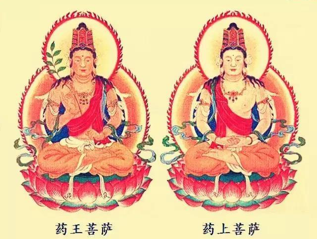 药王菩萨与药上菩萨曾是一对兄弟,一名星宿光,一名电光明。星宿光长者在过去世琉璃光照如来像法时期,因听闻日藏比丘广赞大乘菩萨本缘,演说如来无上清净平等大慧,心生欢喜如闻甘露药。因此而以各种雪山良药供养诸比丘众,发菩提心,作菩萨愿。