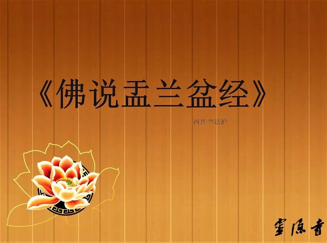 佛告目连,十方众僧,七月十五日僧自恣时,当为七世父母,及现在父母,厄难中者,具饭百味五果,汲灌盆器,香油锭烛,床敷卧具,尽世甘美以著盆中,供养十方大德众僧。当此之日,一切圣众或在山间禅定,或得四道果,或在树下经行,或六通自在,教化声闻缘觉,或十地菩萨大人,权现比丘,在大众中,皆同一心,受钵和罗饭。具清净戒圣众之道,其德汪洋。其有供养此等自恣僧者,现世父母,六亲眷属,得出三途之苦,应时解脱,衣食自然。若父母现在者,福乐百年。若七世父母生天,自在化生,入天华光。