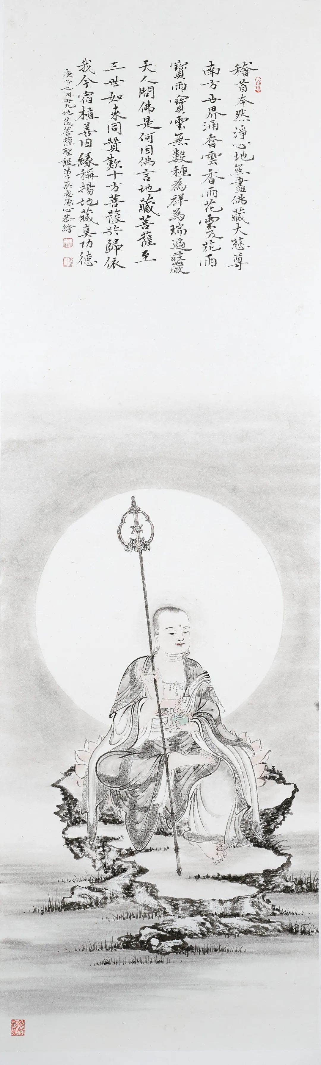 前次于分身集会品中,世尊已经咐嘱过了,这次又再次咐嘱。世尊嘱了又嘱,无非是悲心深切,不舍受苦众生,不忍抛弃可怜无智众生,而独入涅槃,所以才这样的殷勤咐嘱,要地藏王菩萨一肩承担普利人天。