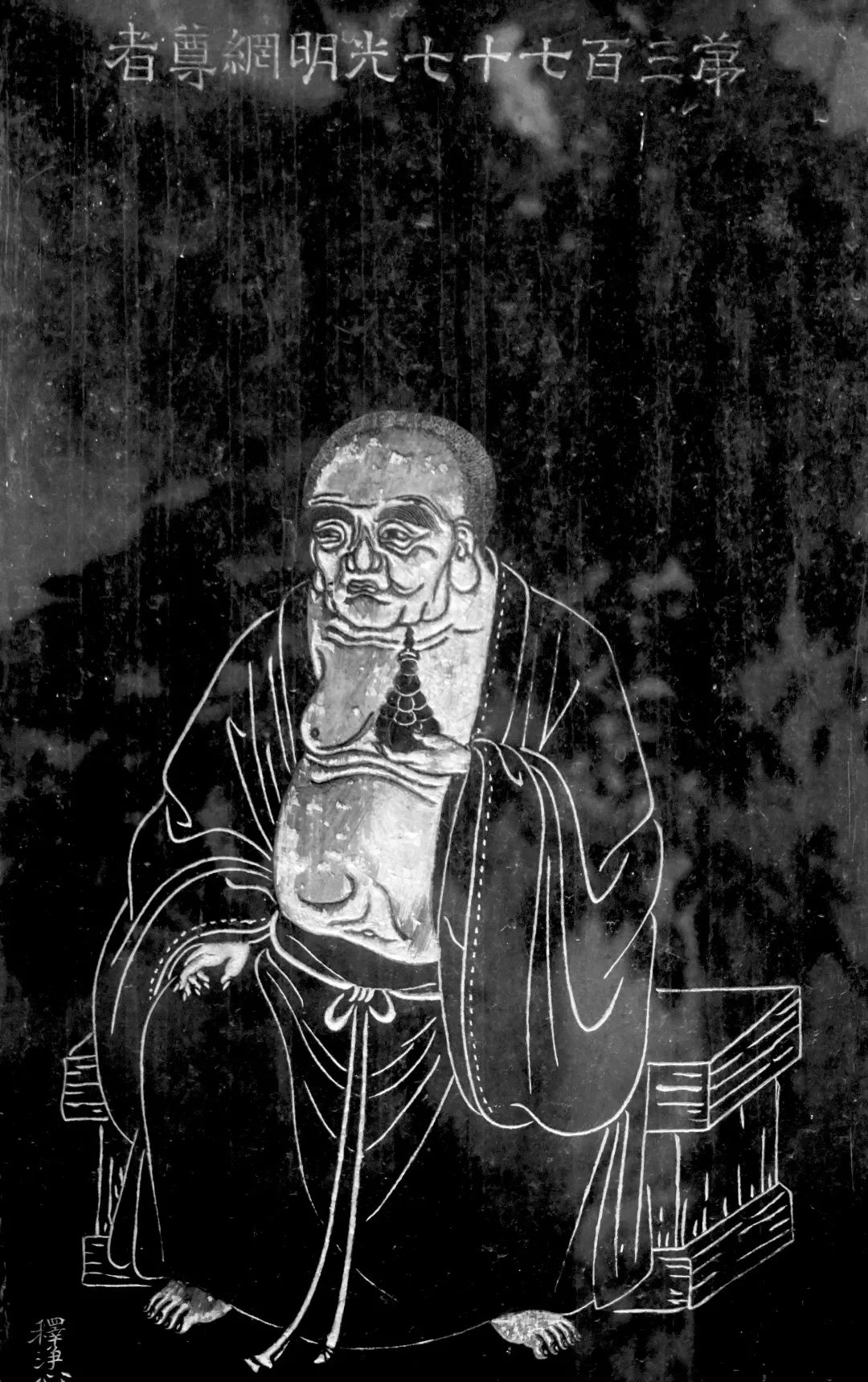 五百罗汉第叁佰柒拾柒尊光明网尊者,即光明网菩萨,为护念佛行之二十五菩萨之一。