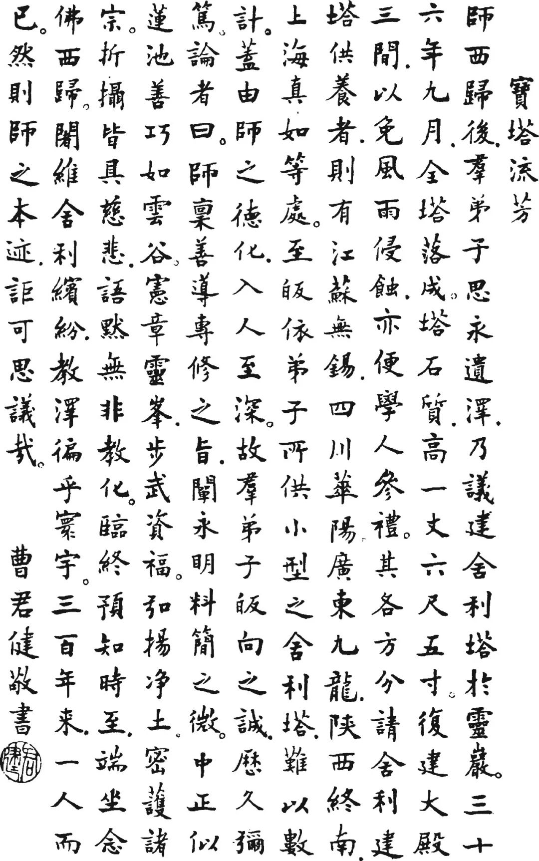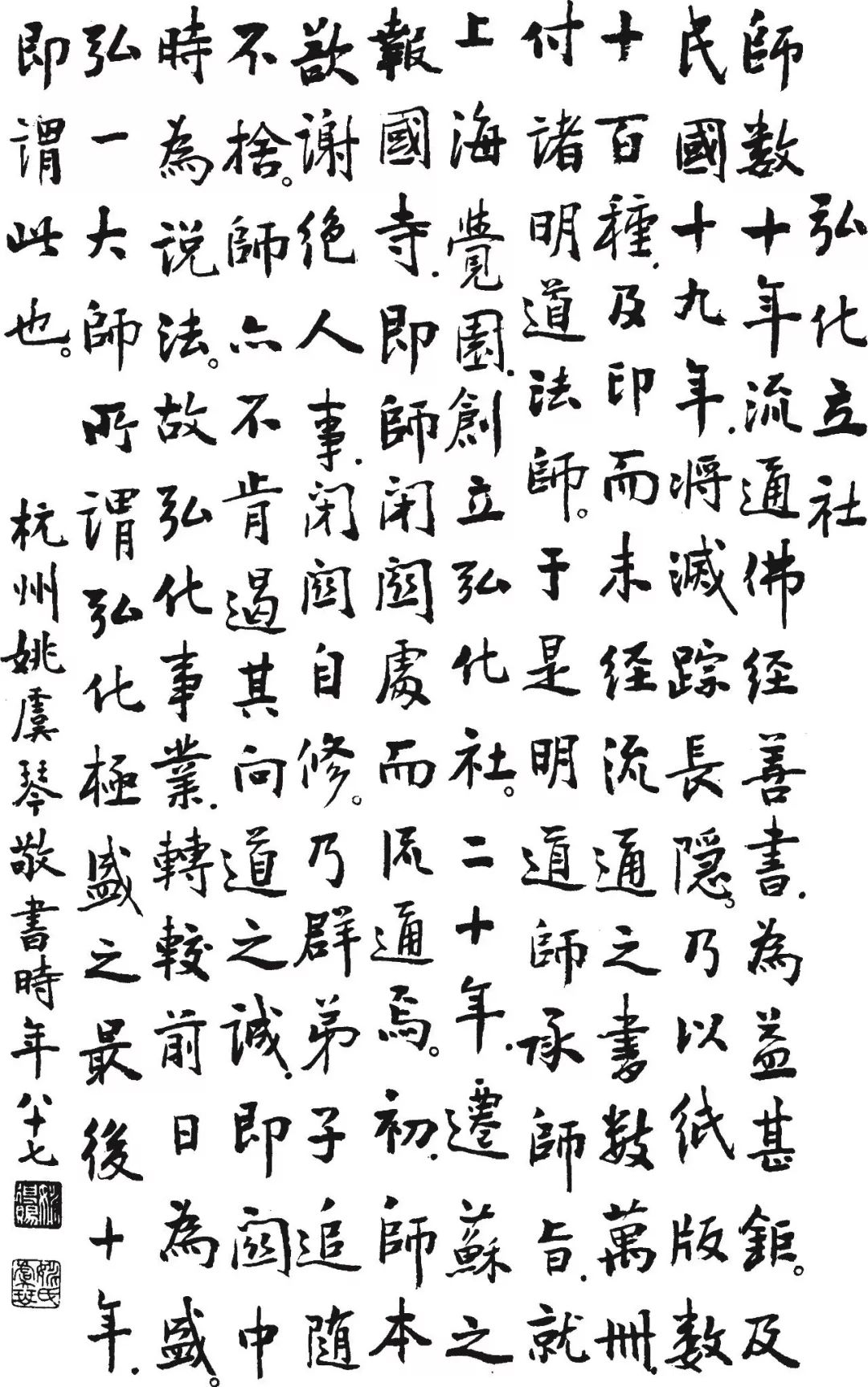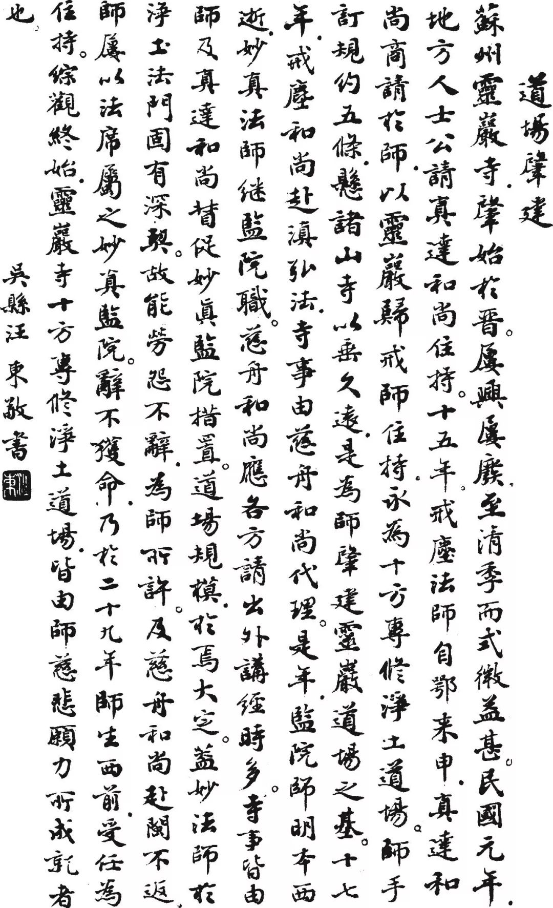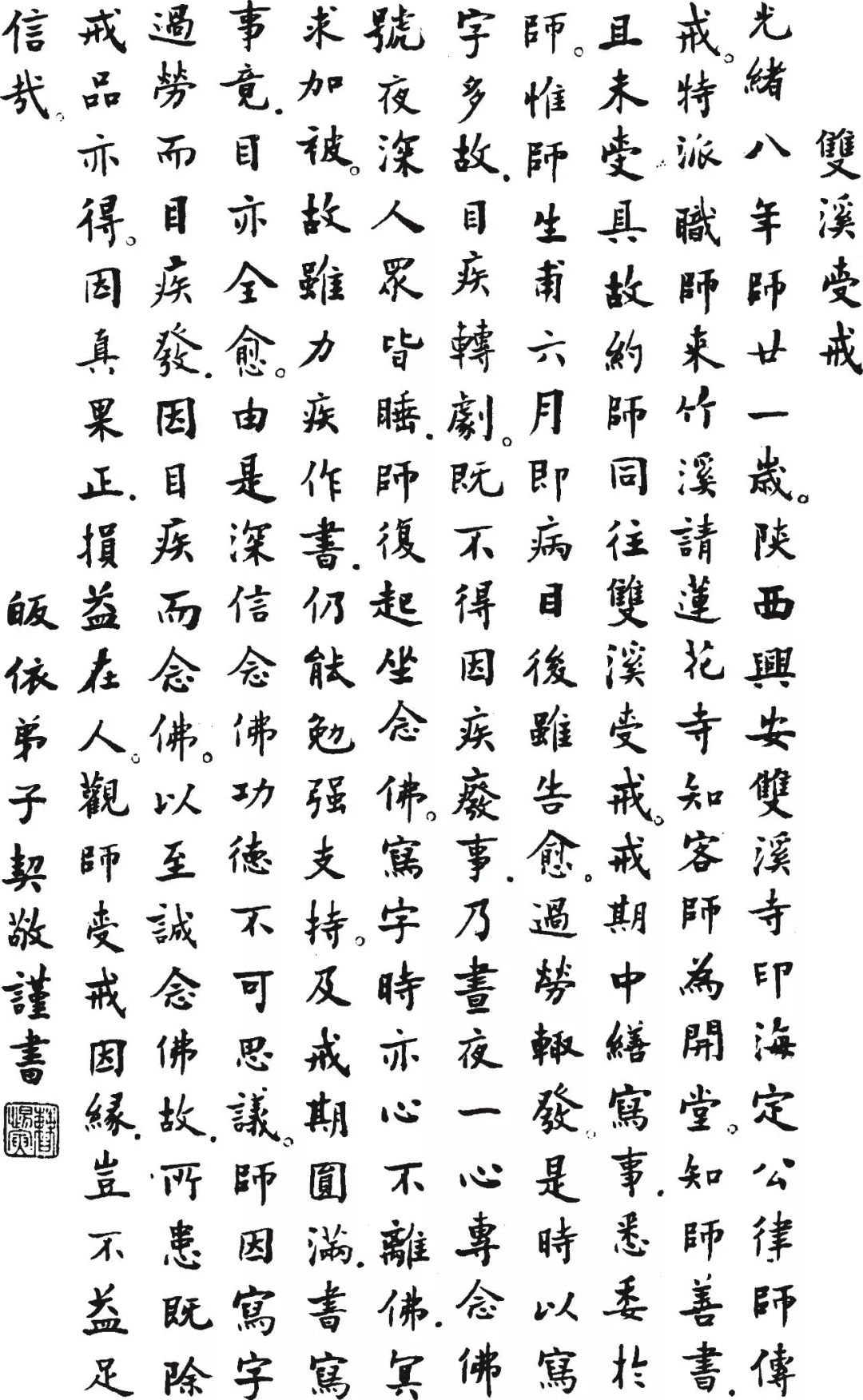 清光绪二十年,余在普陀山。法雨寺化闻和尚,敦请印光大师讲经,得与识面。讲经事竣,大师即在寺阅藏,历二十余年,日对一编,足不出户限,故诸经之奥,靡不贯通。日常行持,抱定一句南无阿弥陀佛,盖因深通教义,故益重视念佛法门。佛所说法,无一法不是疗治众生之病苦,念佛法门,名为阿伽陀药,总治一切病,但能信心坚固,愿行深切,决定得到圆满利益。如大师之真实行持,脚踏实地,禅讲兼通,而归宗于净土,昌明大法,密护诸宗,常以诸恶莫作,众善奉行,敦伦尽分,闲邪存诚,深信因果,老实念佛等语教人,不标新,不玄奇,所谓道在平常日用间,其一生之功行事迹,及本身成就,昭昭在人耳目,不待余之饶舌也。兹者,其弟子灵岩妙真和尚,及了然、德森、廉音、如岑诸法师,周孟由、吴谷宜、费范九、袁伯庸、窦存我、游有维众居士,为纪念大师,传播遗教,以宏扬净土,特聘沪上名画家唐云、孔小瑜,合作大师画传廿五幅,每幅之后,系以略传,分请名书家书写,由灵岩山寺制印成册,广为流通。窃以归依佛祖,要假型仪,即像道存,藉起信愿。盖凡心陋劣,未能触途成观,正法之时,已因见相而发心,像季之中,更须见像而造福。昔阿难白佛言:我见如来三十二相,胜妙殊绝,形体映彻,犹如琉璃,是以渴仰,从佛剃落。以此观之,阿难佛弟,尚观胜相而发心,况凡愚者乎!吾国各宗历代祖师,都有画像、或塑像流传,然未若今此画传,以生华之笔,用色彩写真,将大师一生事迹,跃然表现於纸上,是亦现代艺林之大观,而我佛门之盛事也。大师弟子遍寰宇,多服膺其教言,而未亲其道范,今有此画传流通,使天下后世,永得瞻仰,如同亲炙,则大师之遗教,亦永垂不朽矣!惟愿诸仁者,由影得心,由心得道,闻画说法,共证真常,同生净土焉。