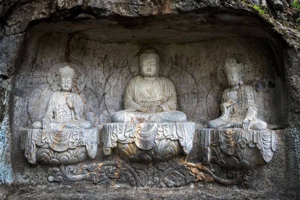 大势至,梵语“摩诃那钵”,意译作得大势、无边光、大精进。作为“西方三圣”之一的大势至菩萨,与观世音菩萨一样,同为阿弥陀佛的助手,乃是极乐世界第二顺位递补佛位的大菩萨。《无量寿经》云:“有二菩萨最尊第一,威神光明普照三千大千世界,一名观世音,二名大势至。此二菩萨于此国土修菩萨行,命终转化,生彼佛国。”可见二菩萨与阿弥陀佛和娑婆世界都特别有缘,故于此界以净土法门度化众生,令生极乐世界。