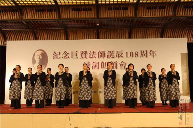 朗诵会还特别邀请杭州佛学院同润法师朗诵《致抗日将士慰劳书》;门鸿法师用梵呗演绎《一九四六年岁首中印庵赏雪记事》。眼前僧宝庄严,耳边僧诗萦绕,想必在场听众也能借助诗中情怀,闪回上个世纪,感受大师风采。