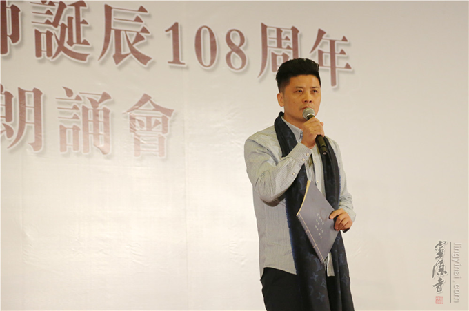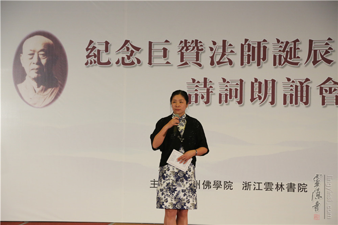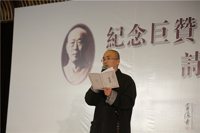 朗诵会以近代中国佛教巨擘巨赞法师生平大事为线索,云林国学班第15期的学员们依次上台朗诵大师诗作。"挥戈反日思良将,袒臂高呼待硕儒"的爱国情怀;"遥知松菊茂,愿托白云岑"的情意绵长;"心光长皎皎,处境自得宜"的清凉心境,刻画出一个立体又鲜活的时代佛教僧形象。