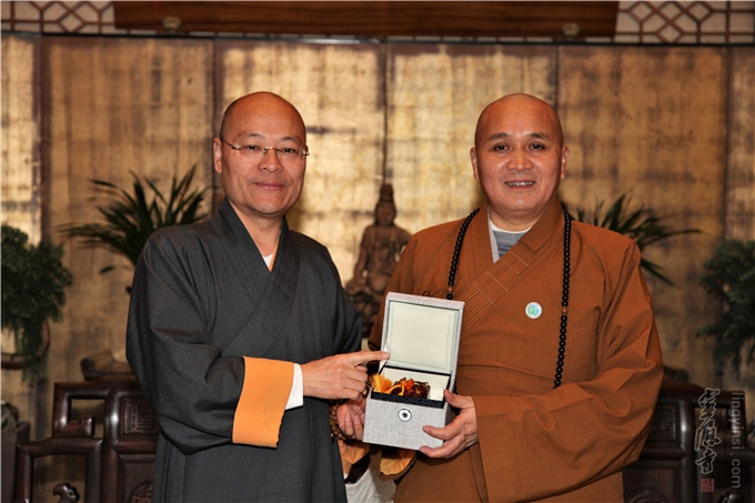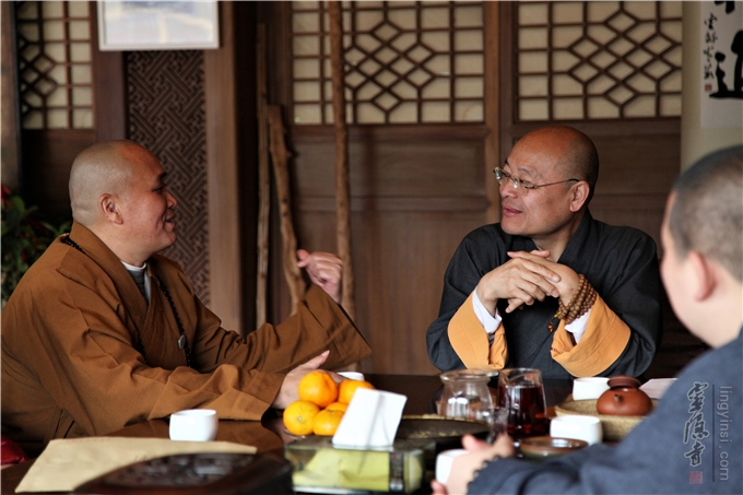 2017年11月19日,中国佛教协会副会长、四川省佛教协会会长、峨眉山方丈永寿法师一行参访杭州灵隐寺受到光泉法师热情接待,宾主就当代寺院弘法模式、佛教教育管理等话题进行了深入探讨。