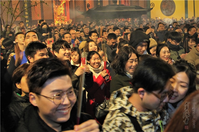 人群中有专程从外地赶来的灵隐寺跨年的虔诚善信;有扶老携幼一起在灵隐寺欢度跨年一家人;有特意走进寺院感受中国新年的外国朋友,在节日的喜悦和古刹的祥和中,一切都变得和谐而欢喜。他们满面欢喜,兴致勃勃,结伴参礼古刹,共同祈福新年。