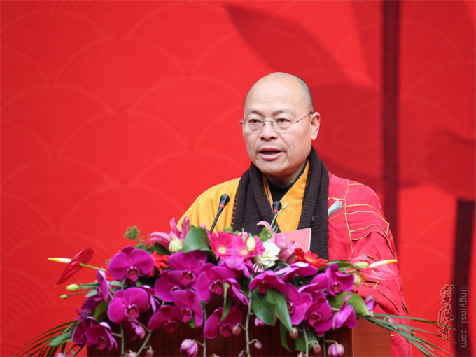 灵隐寺方丈光泉大和尚代表诸山长老致辞祝贺,鼓励净名寺显宝法师和两序大众、四众弟子,依教奉行,爱国爱教,尽心尽责,开启雁荡山佛教文化事业的新篇章。