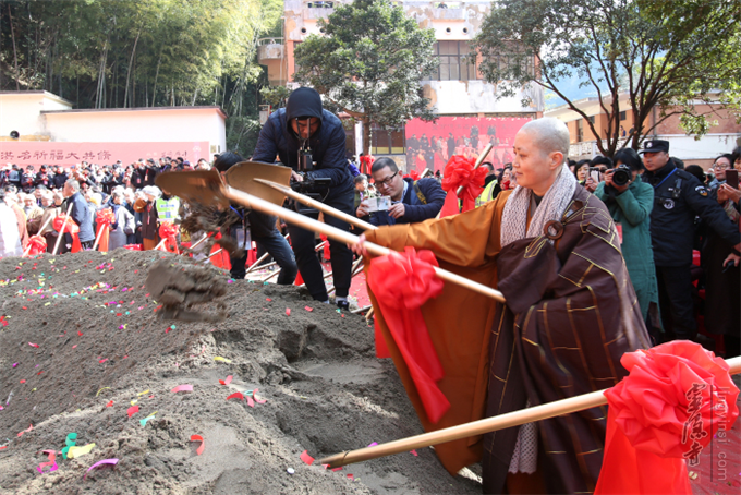 净名寺住持显宝法师和诸山大德 领导嘉宾一起为奠基典礼挥锹培土