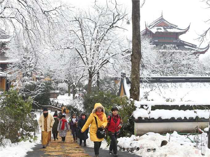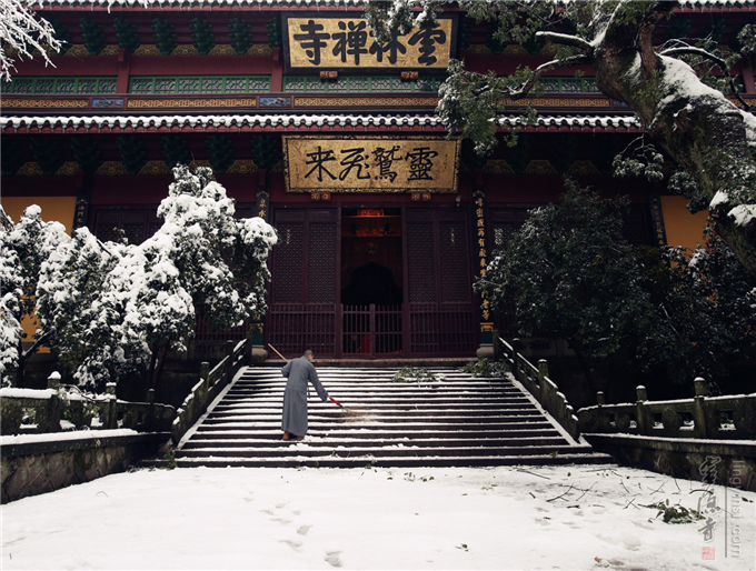 腊月初八之后,杭州灵隐寺迎来今年第一场瑞雪,千年古刹更显清静庄严。