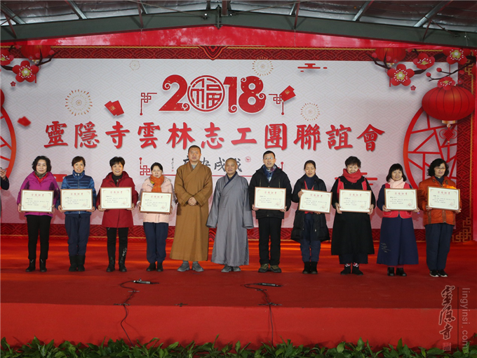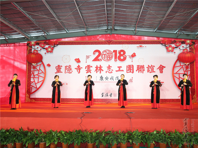 1月28日,天气寒冷,但寺院内的紫竹广场热闹非凡,2018年灵隐寺云林志工团联谊会在这里举行,志工菩萨在欢乐、祥和的气氛中,相聚联欢。