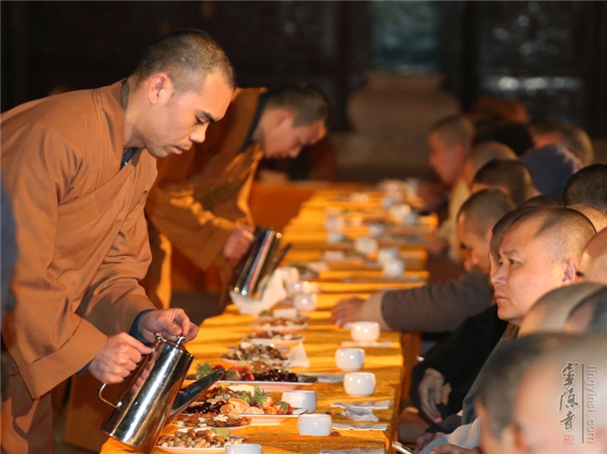 2018年2月13日,杭州灵隐寺举行"温暖灵隐围炉普茶会",灵隐寺常住法师、居士欢聚一堂,互致新春问候。