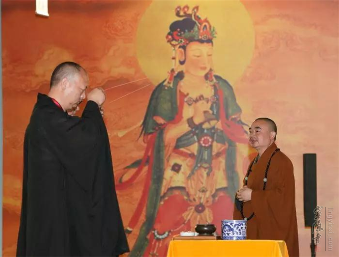 上午10时,宁波护法居士发心,设上堂斋供养三宝,并迎请得戒大和尚灵隐寺方丈光泉大和尚主法。
